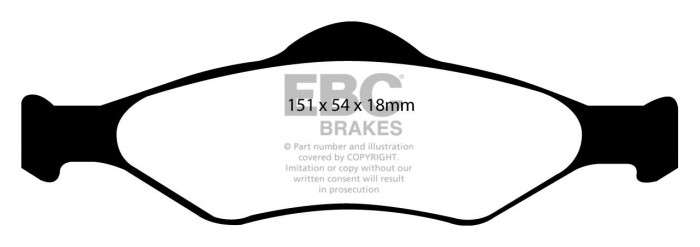 Nie pozwól, aby niższa cena zamiennika przesłoniła Ci ten doskonałej jakości produkt, który zatrzyma Twój samochód równie sprawnie, jak klocki oryginalne, a przy tym szybciej niż większość innych dostępnych na rynku. Wspaniałą zaletą klocków EBC jest ich zdolność do całkowitej eliminacji szarpania przy hamowaniu – po 450-600 km przebiegu praktycznie KOMPENSUJĄ szarpnięcia o umiarkowanym natężeniu. Nominalny współczynnik tarcia 0,46, przy minimalnym ścieraniu tarcz hamulcowych oraz pyleniu na poziomie części oryginalnych.