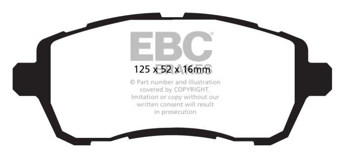 Przeznaczone do wymagających warunków jazdy miejskiej, charakteryzują się podwyższoną skutecznością hamowania aż do 600°C. Klocki hamulcowe EBC Greenstuff wyróżnia wysoka początkowa siła hamowania, dająca kierowcy poczucie pewności od pierwszego naciśnięcia pedału hamulca. Można by powiedzieć że nie ma czegoś takiego jak niepylące okładziny cierne. Istotą działania hamulców jest wytwarzanie pewnych ilości pyłu, co pozwala uniknąć wibracji tarczy hamulcowej (tzw. shimmingu). Pylenie klocków hamulcowych jest nasilone w okresie ich docierania, szczególnie w przypadku zużytych tarcz hamulcowych. W porównaniu z większością innych, klocki EBC Green Stuff generują mniejsze ilości pyłu i jest on łatwiej zmywalny. Nominalny współczynnik tarcia 0,55. Do cięższych i szybszych samochodów oraz tych wyposażonych w silniki o mocy przekraczającej 200 KM stanowczo zalecamy produkty z serii Redstuff, które wyróżniają się jeszcze mniejszym pyleniem.