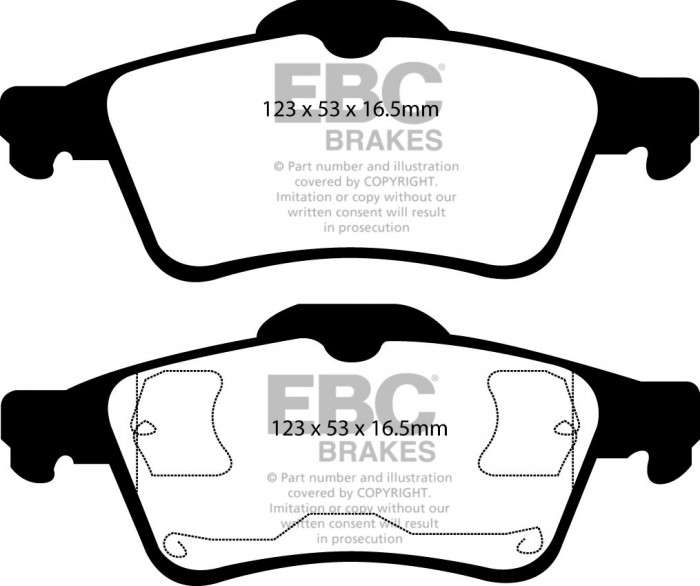 Nie pozwól, aby niższa cena zamiennika przesłoniła Ci ten doskonałej jakości produkt, który zatrzyma Twój samochód równie sprawnie, jak klocki oryginalne, a przy tym szybciej niż większość innych dostępnych na rynku. Wspaniałą zaletą klocków EBC jest ich zdolność do całkowitej eliminacji szarpania przy hamowaniu – po 450-600 km przebiegu praktycznie KOMPENSUJĄ szarpnięcia o umiarkowanym natężeniu. Nominalny współczynnik tarcia 0,46, przy minimalnym ścieraniu tarcz hamulcowych oraz pyleniu na poziomie części oryginalnych.