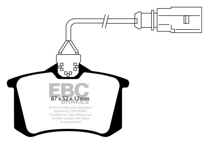 Nie pozwól, aby niższa cena zamiennika przesłoniła Ci ten doskonałej jakości produkt, który zatrzyma Twój samochód równie sprawnie, jak klocki oryginalne, a przy tym szybciej niż większość innych dostępnych na rynku. Wspaniałą zaletą klocków EBC jest ich zdolność do całkowitej eliminacji szarpania przy hamowaniu – po 450-600 km przebiegu praktycznie KOMPENSUJĄ szarpnięcia o umiarkowanym natężeniu. Nominalny współczynnik tarcia 0,46, przy minimalnym ścieraniu tarcz hamulcowych oraz pyleniu na poziomie części oryginalnych.