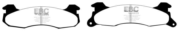 W porównaniu z półmetalicznymi klockami hamulcowymi, emitują znacznie mniej pyłu i są w stanie wyhamować klasyczną limuzynę, sportowe auto kompaktowe, bądź stuningowanego hatchbacka z prędkości 160 km/h na odcinku o 13 metrów krótszym w porównaniu z oryginalną częścią zamienną. Pokryte są opracowaną przez EBC specjalną powłoką konserwującą powierzchnię tarcz i przyspieszającą proces docierania. Nominalny współczynnik tarcia 0,5 przy obniżonej o około 50% emisji pyłów. Mają szczególne zastosowanie w samochodach z napędem na cztery koła jak np. Subaru Impreza oraz Mitsubishi Evo, są również doskonałe w cięższych samochodach jak BMW M3/M5 czy Audi A4/A6.